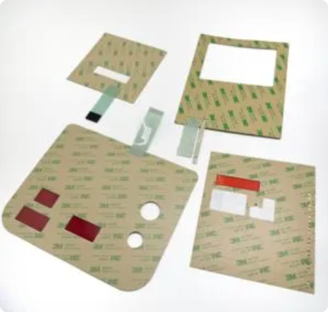 Kalvokytkinnäppäimistö, graafinen peitto, nimikilpi, paineanturi, silikoninäppäimistö ja silikonituotteet